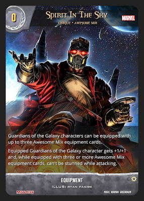 Anyway, yesterday I got a text from the owner of our LCS saying that he had received a small initial shipment of VS 2PCG, and that he was holding a box for me. I swung by after work and picked it up, then went home and started checking it out. Fortuitously, my son DJ had the day off, so we were able to explore the game together. We quickly decided that we'd each build a mono-team deck on our own, and learn the game by building the decks and playing them against each other. I picked Guardians and Star-Lord, while he opted for X-Men and Storm.
